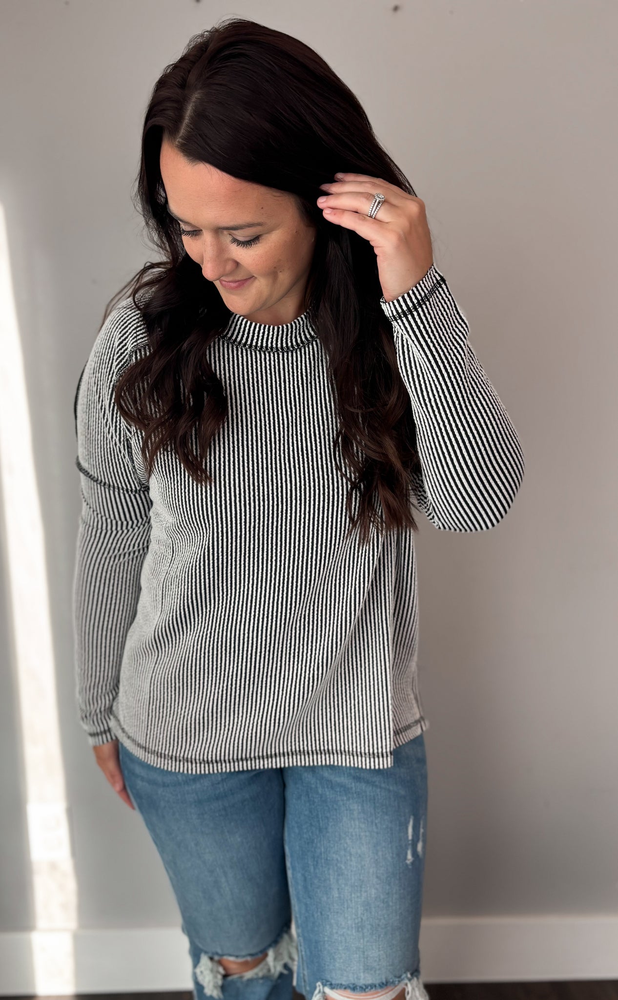 Black and White Ribbed Top
