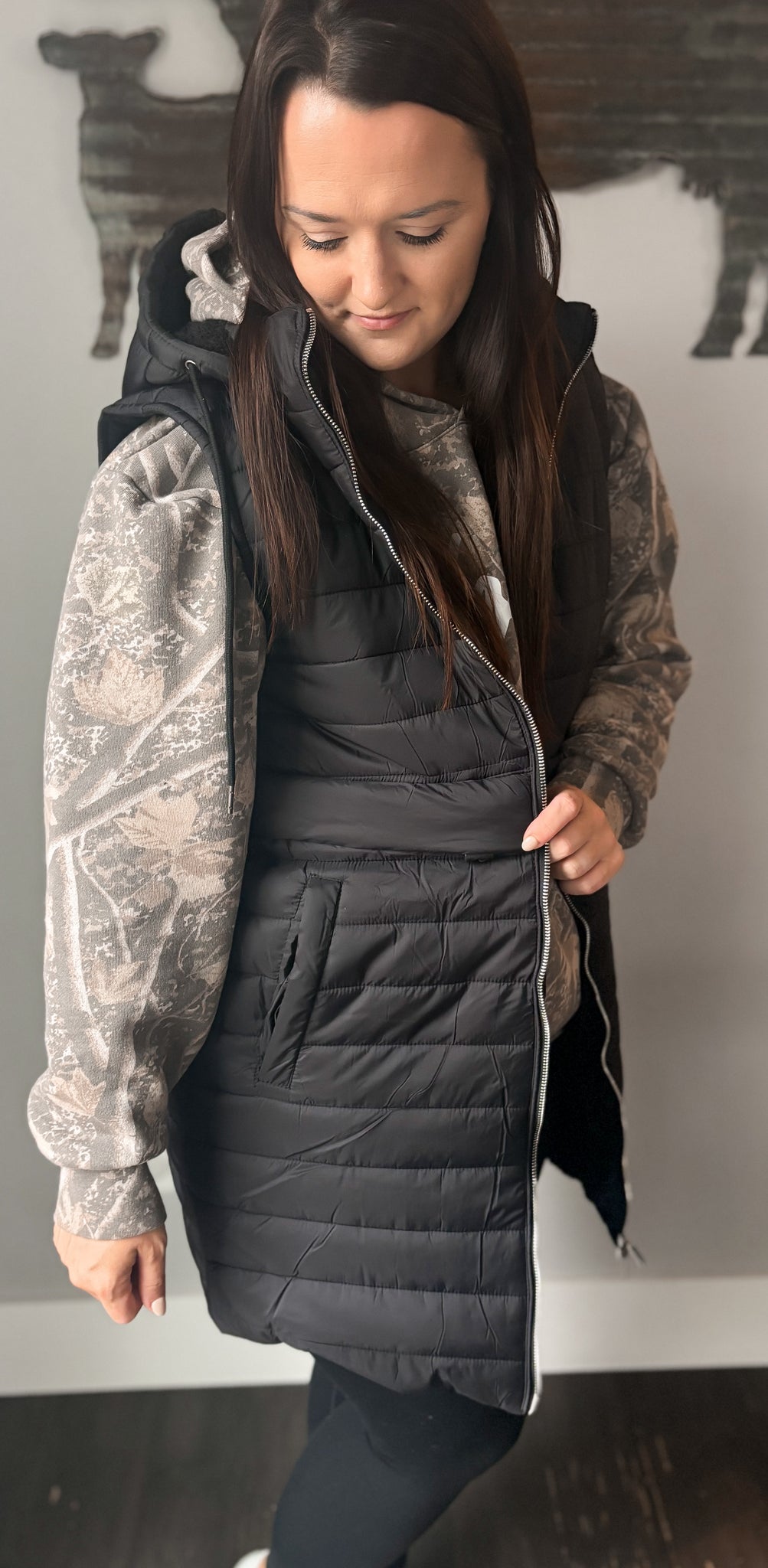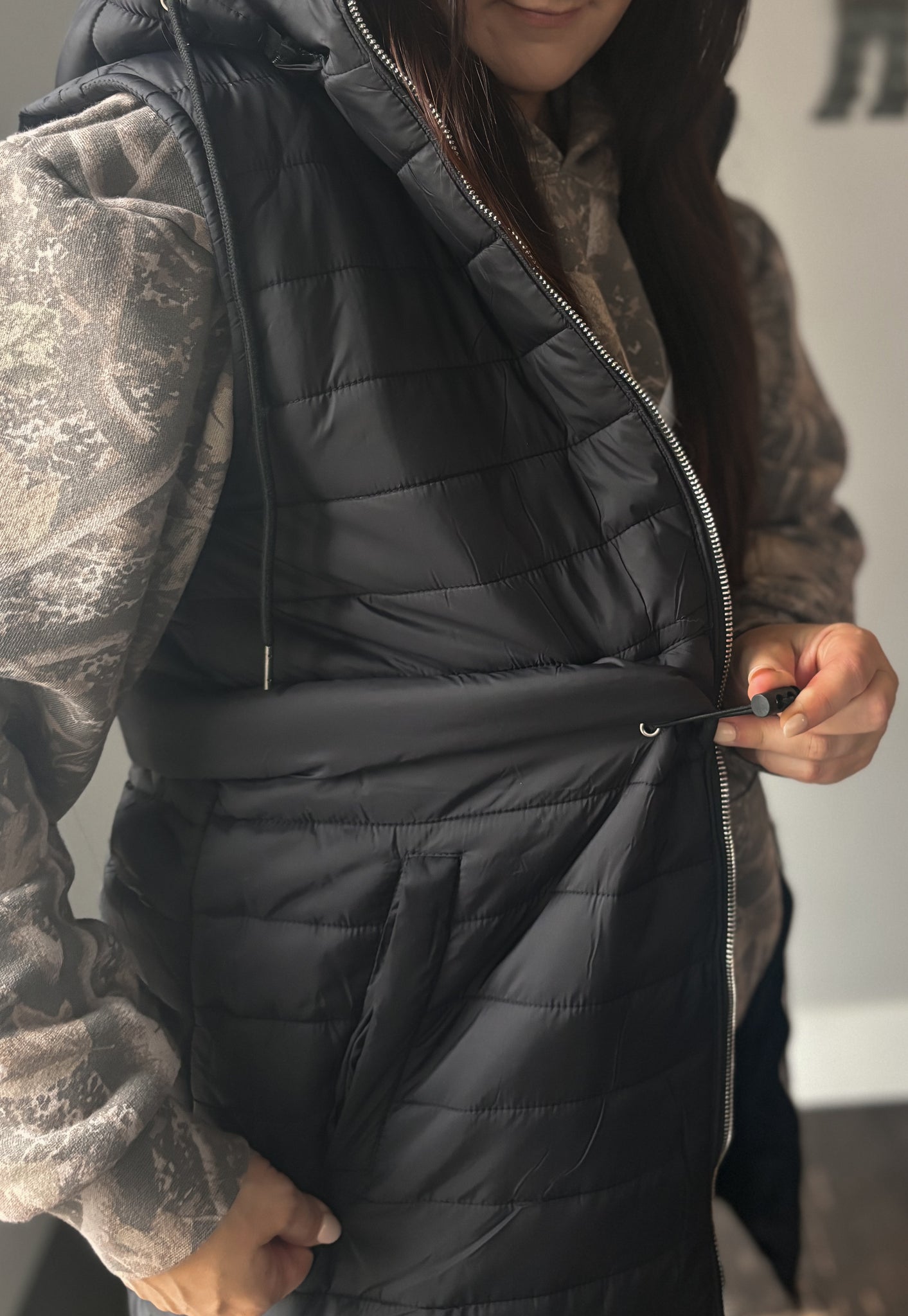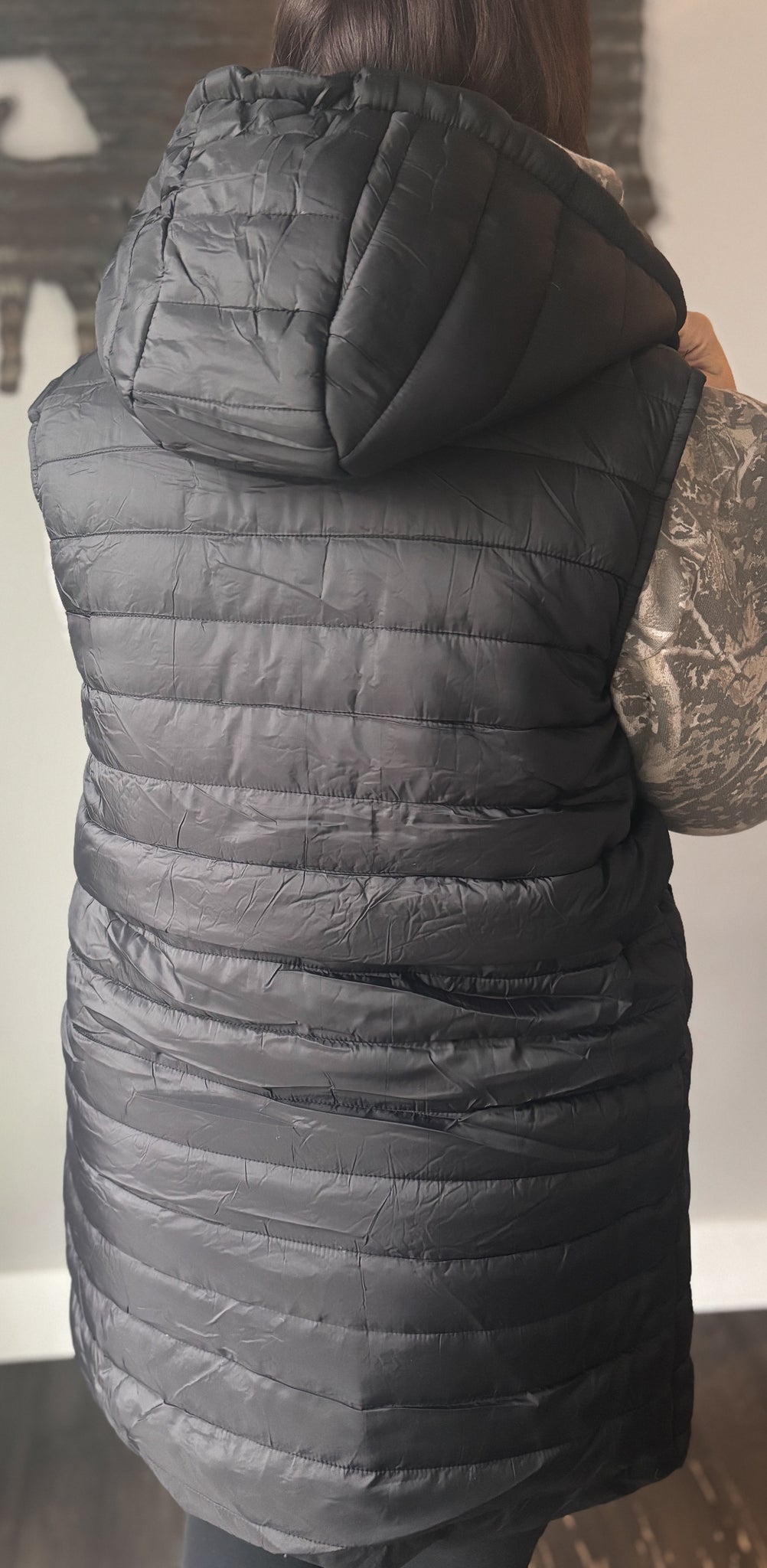 This long puffer vest is an absolute must this season! Great quality, has a cinch waist feature and a detachable hood as well as two large pockets! These run true to size