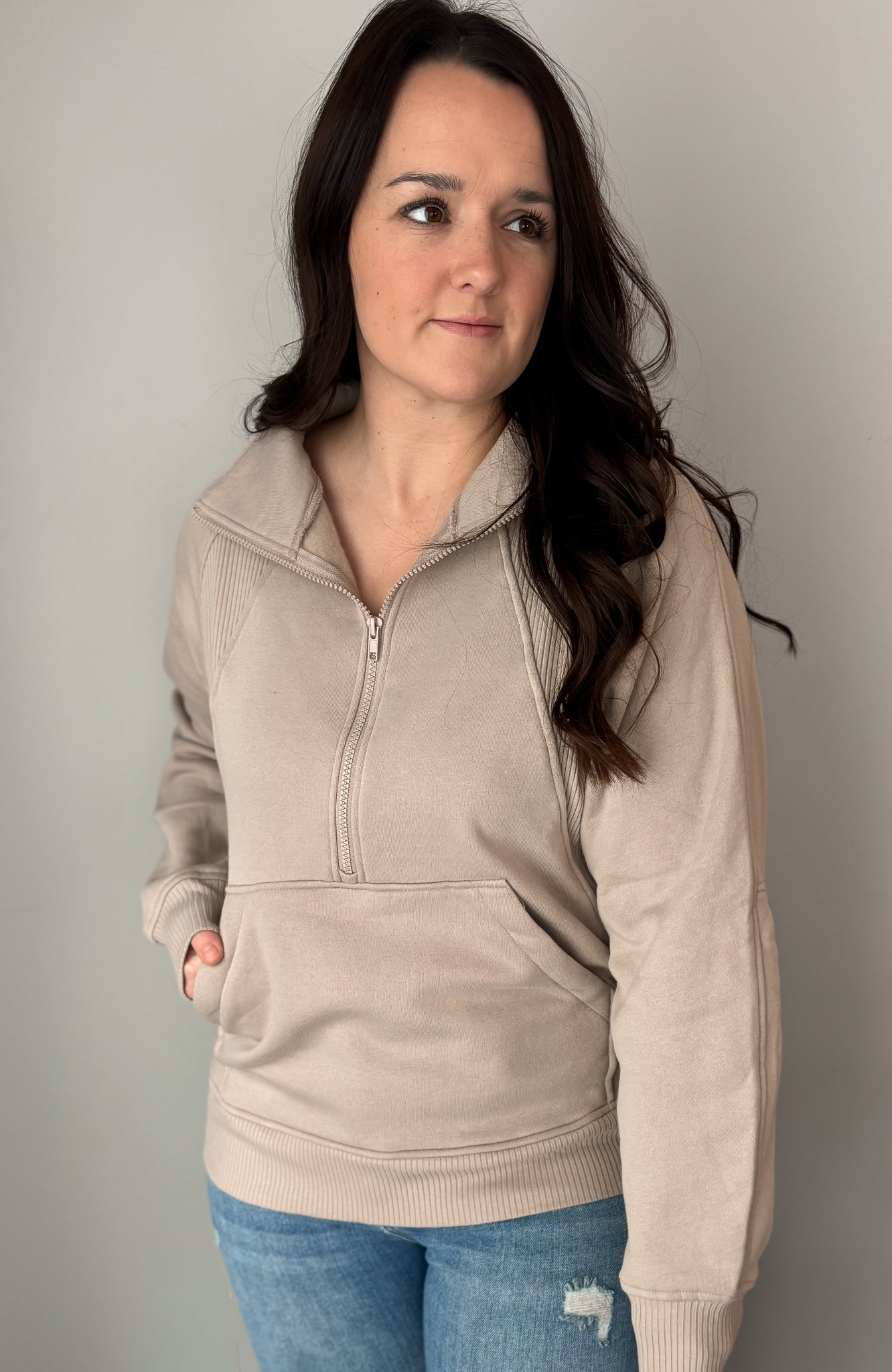 Mocha Ribbed Quarter Zip